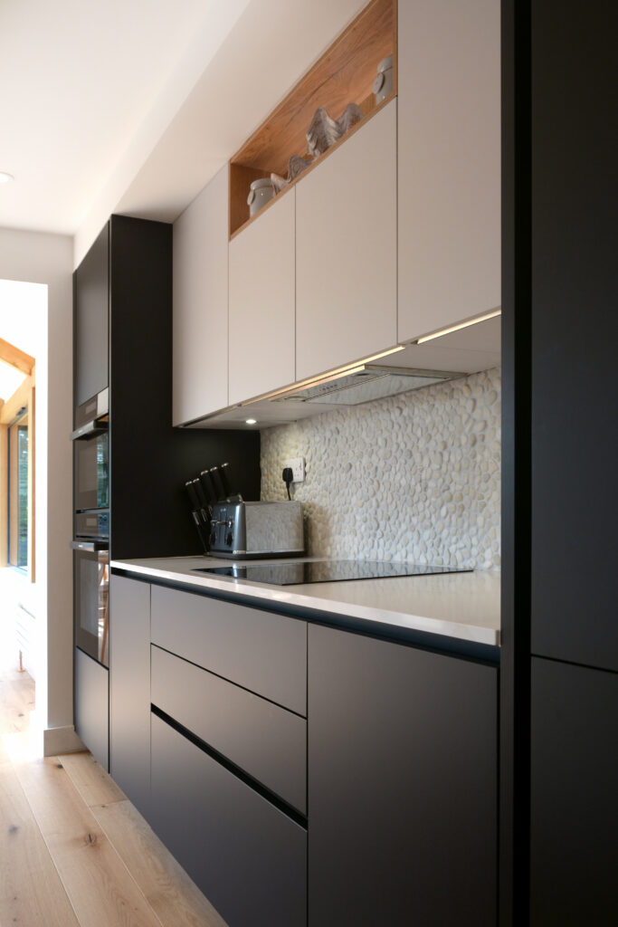 An uber-stylish modern kitchen suited to a minimalist home. The Owners had originally requested a crisp white design, however they were concerned that this would result in the same look as their previous kitchen.