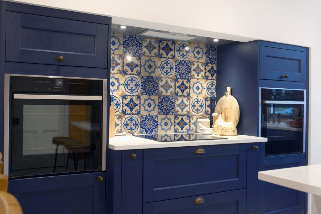 A standout design feature is the Euro-height oven cabinetry, tailored precisely to fit within the home’s original fireplace alcove. This clever architectural integration frames the hob beautifully, transforming what was once an unused space into a practical and visually striking focal point.